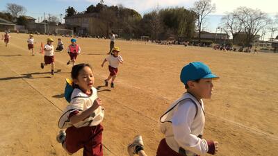 寒い日が続いている中、子供たちは自分の記録向上に向けて一生懸命がんばって走っています。