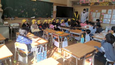4月から小学生になる保育園自に1年生が小学校のお勉強のことや、学校生活のことをやさしく手をとりながら教えていました。