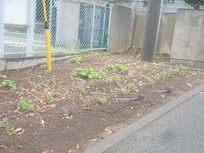先日学校応援団の阿部さんが、学校東側校門付近花壇にきれいなお花を植えていただきました。